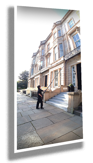 We clean using the modern technique of Water-Fed-Pole.